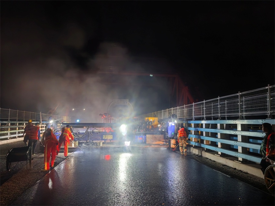 为顺利完成该桥面浇筑式沥青铺装施工任务,项目部统筹规划,多措并举,优化现场人机料的资源配置,坚持以“质量第一、服务满意”为市场引擎,按期保质保量完成施工任务,赢得了业主、总包单位和监理单位的一致好评,为公司进一步开拓区域市场打下良好基础。