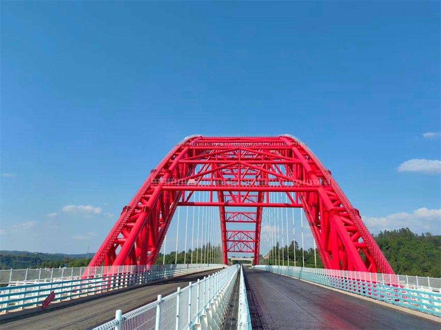 近日,由我司承担劳务施工的镇广高速白马渠江大桥桥面浇筑式沥青铺装工程正式完工。白马渠江特大桥是镇广高速通广段的控制性工程,位于广安市前锋区,横跨渠江,连接广安区与前锋区。大桥主桥采用“一跨过江”的中承式钢管混凝土拱桥设计,全长657.8米,净跨径390米。